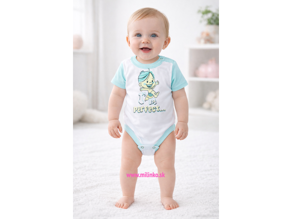Detské body, krátky rukáv-PERFECT, bielo-zelené