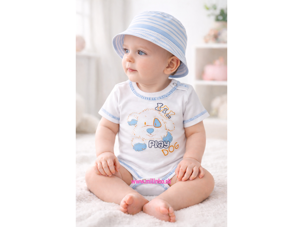 Detské body s krátkym rukávom zdobené potlačou. Body pre bábätká sú vyrobené z kvalitného mäkkého materiálu, pri krku so zapínaním na patenty. Krátko rukávové body je vhodné do teplého letného počasia, ľahko sa kombinuje s iným detským oblečením. Obľúbené oblečenie skombinujte s legínami pre deti, polodupačkami, alebo šatočkami.