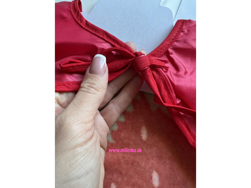 Podbradník Jahoda s dlhým rukávom je vhodným pomocníkom pre všetky situácie, kedy hrozí zašpinenie. Podbradník s dlhým rukávom zakrýva ramená, ruky a celú hruď. Je ľahučký, neobmedzuje dieťa v pohybe, zapína sa vzadu pri krku na šnúrky (podbradník nie je hračka, nenechávajte dieťa bez dozoru s podbradníkom). Vďaka vode odolnému materiálu je jednoduché ho udržiavať v čistote. Vrchná časť podbradníka je látka, ktorá je podšitá gumenou vrstvou, ktorá neprepúšťa nečistoty na oblečenie dieťatka.