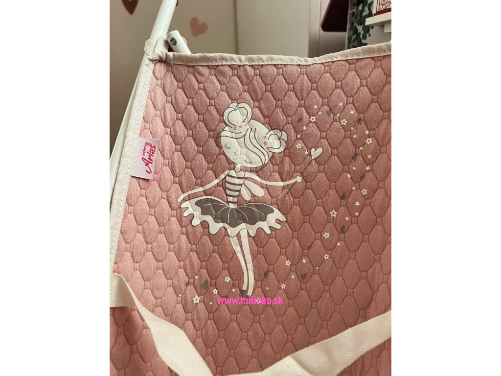 Ružový detský kočík pre bábiky s jednoduchou konštrukciou. Kočík je vyrobený z kovového rámu a má plastové kolieska, ktoré umožňujú ľahkú manipuláciu. Sedadlo je potiahnuté jemnou látkou s prešívaným vzorom. Rukoväte sú ergonomicky tvarované a potiahnuté ružovým plastom pre pohodlné ovládanie. Tento kočík je ideálny pre deti, ktoré rady starajú o svoje bábiky a chcú ich voziť na prechádzky.