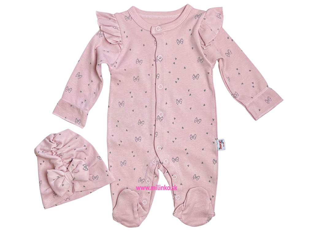Roztomilé kojenecké dupačky s dlhým rukávom a čiapka. Dupačky sa zapínajú na patenty. Kvalitné oblečenie pre bábätká.