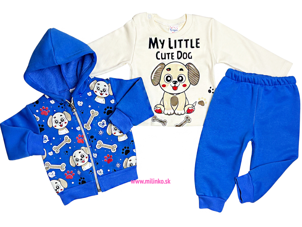 Detský set pre bábätká od tureckej značky je vhodný ako prechodný set na jeseň alebo na jar. Je vyrobený z kvalitnej 100% bavlny, vďaka čomu bude nosenie tohto setu veľmi príjemné pre vaše deti. Detský set obsahuje mikinu so zapínaním na zips, tričko s nápisom a s dlhým rukávom a nohavičky pre bábätká.