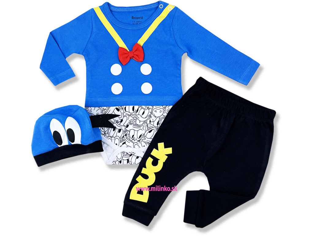 3dielny set pre bábätká s obrázkom. Set kojeneckého oblečenia sa skladá z body so zapínaním na patenty, čiapky a nohavíc. Tento kojenecký set je vhodný do každého ročného obdobia. Detské body sú zdobené potlačou. Kvalitné kojenecké oblečenie.