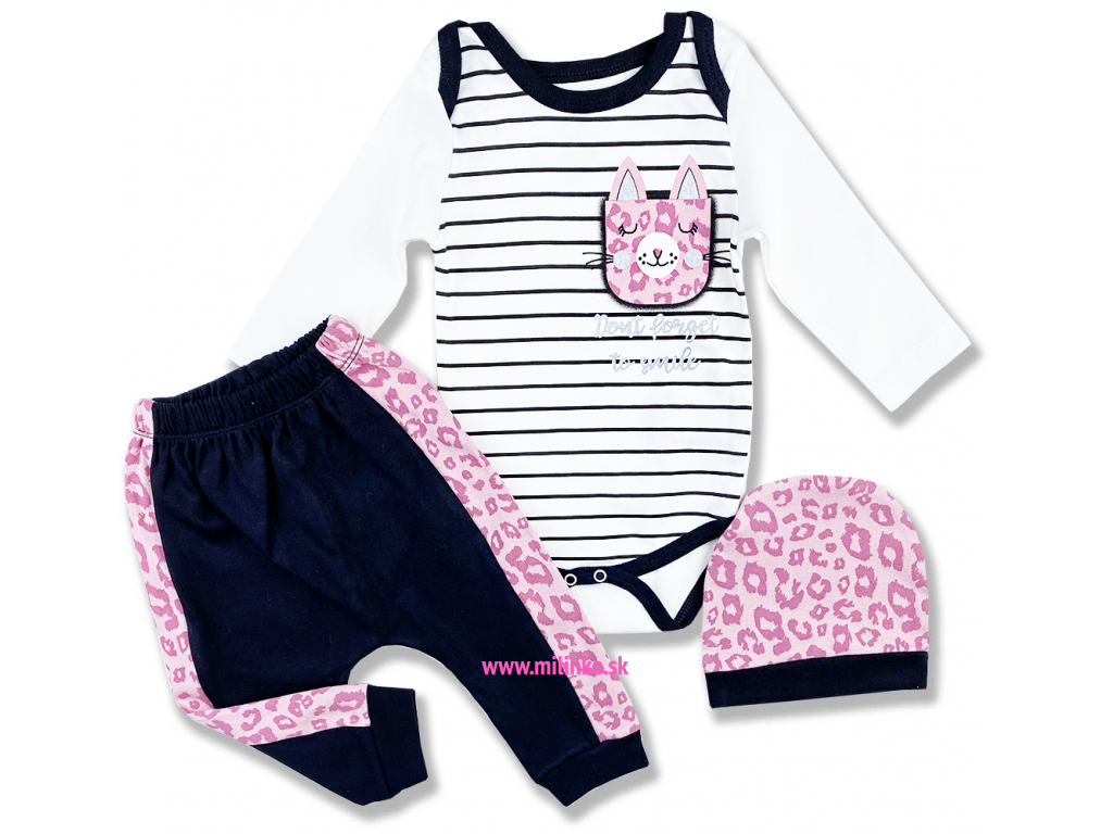 3dielny set pre bábätká s obrázkom. Set kojeneckého oblečenia sa skladá z body so zapínaním na patenty, čiapky a nohavíc. Tento kojenecký set je vhodný do každého ročného obdobia. Kvalitné kojenecké oblečenie.