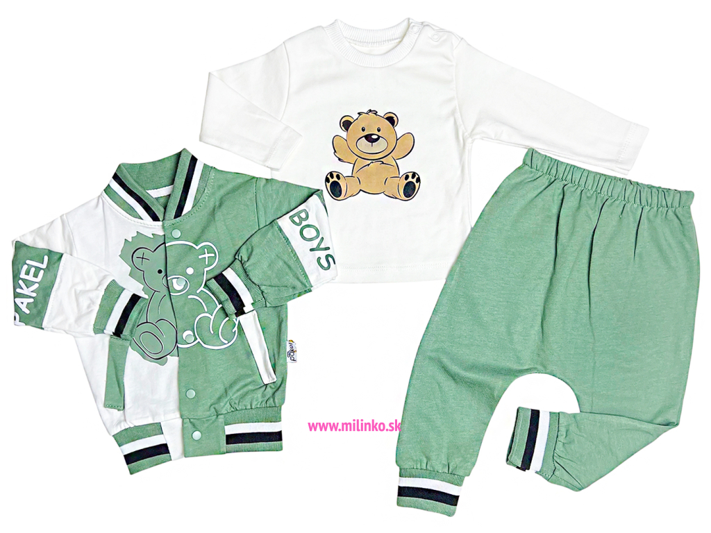 Kojenecký set obsahuje tričko, nohavičky a kabátik pre bábätká. Kojenecký set je vhodný ako oblečenie na voľný čas, ako domáce oblečenie, ale je vhodný aj na prechádzku, na ihrisko alebo do parku. Kvalitné oblečenie pre bábätká.