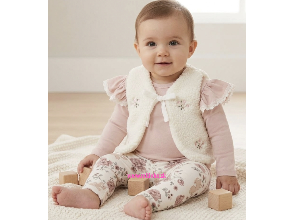 Súprava obsahuje štýlové tričko s dlhým rukávom, pohodlné legíny a mäkkú vestu. Oblečenie je ideálne na každodenné nosenie, do škôlky aj na prechádzky.