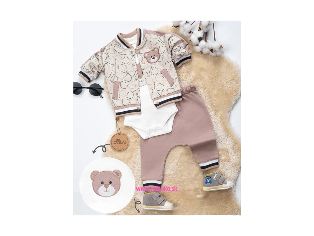 Kojenecký set obsahuje body, nohavičky a kabátik pre bábätká. Kojenecký set je vhodný ako oblečenie na voľný čas, ako domáce oblečenie, ale je vhodný aj na prechádzku, na ihrisko alebo do parku. Kvalitné oblečenie pre bábätká.