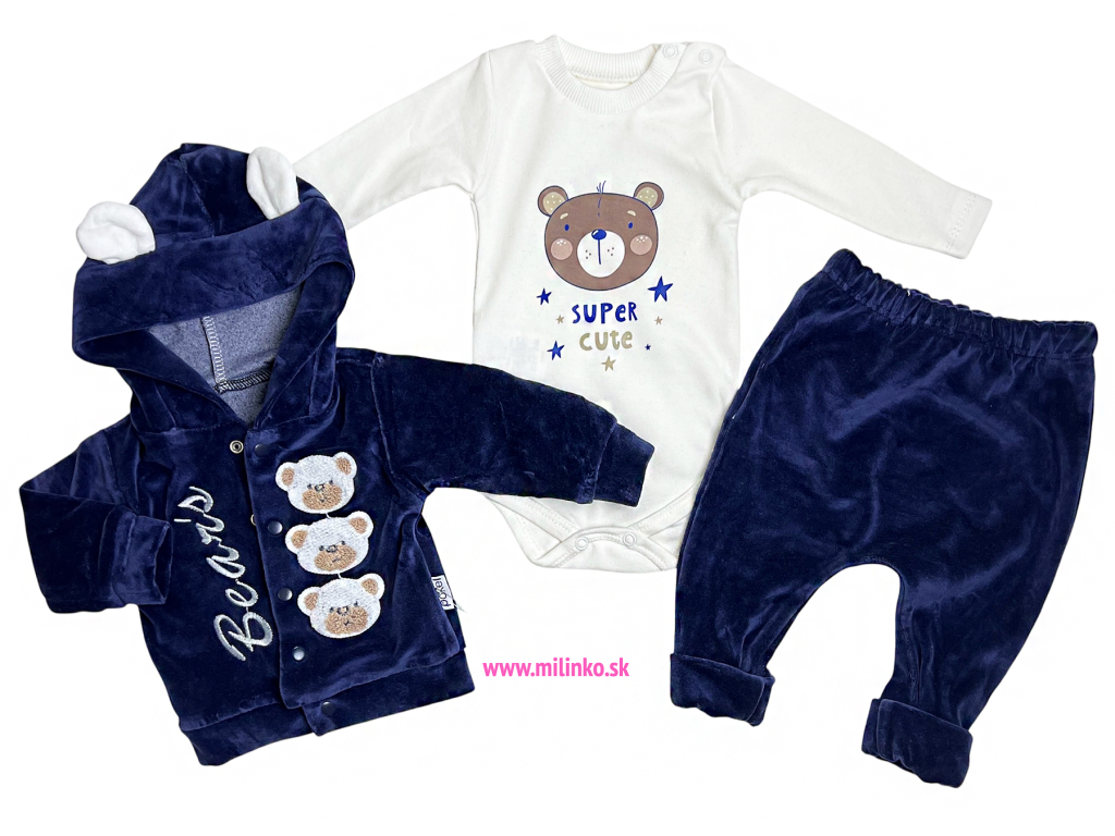 3-dielny plyšový set pre bábätká – Macko, tm. modrý