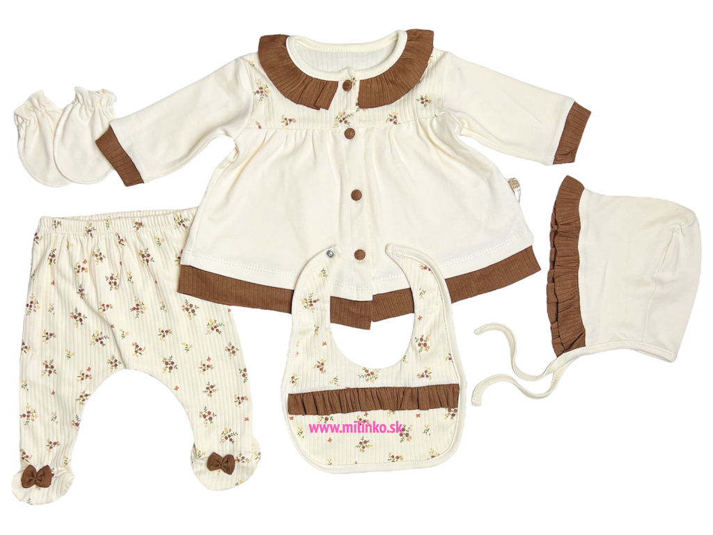 Súprava sa skladá z 5 dielov: vrchného dielu, polodupačiek, podbradníka, čiapky a rukavičiek. Vyrobené z kvalitnej bavlny.