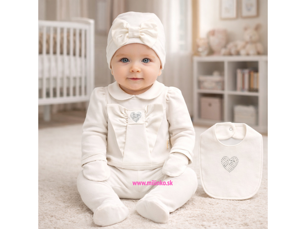 Kvalitné oblečenie pre bábätká. Súpravička dojčenského oblečenia je vhodná aj ako štartovací set pre mamičky. Skladá sa zo 5 dielov.