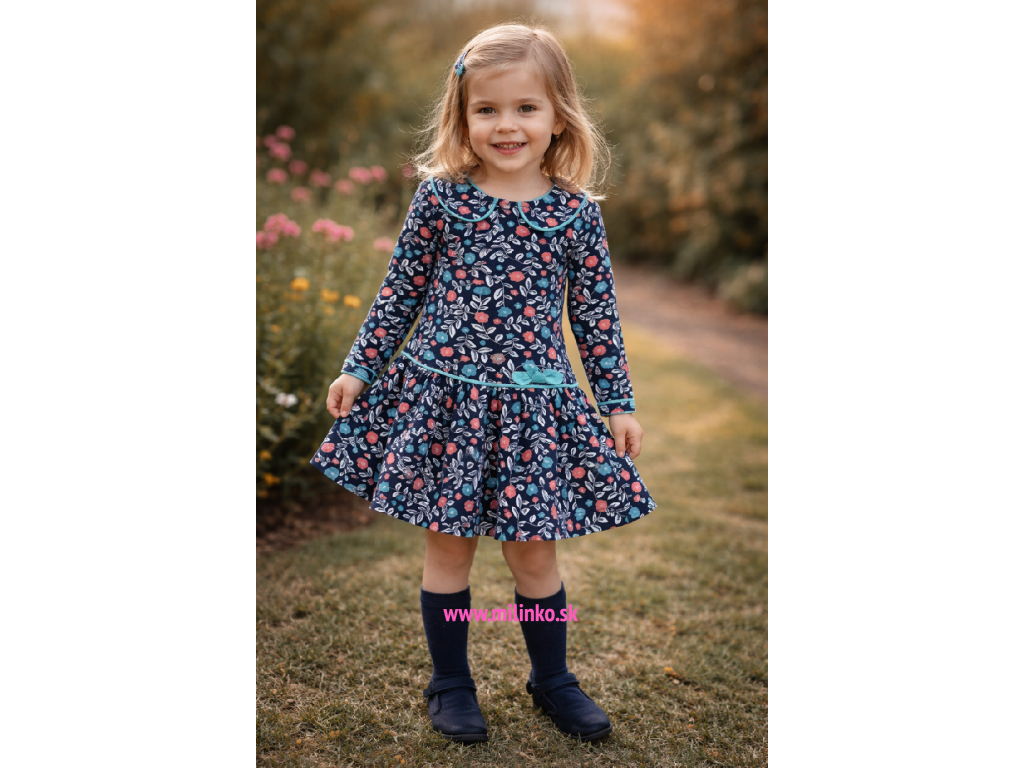 Nádherné dievčenské šaty na dlhý rukáv. Šaty sú ozdobené volánikmi. V strede sú trošku nazbierané a zapínajú sa vzadu na patenty. Šaty sú vyrobené z veľmi kvalitného materiálu.