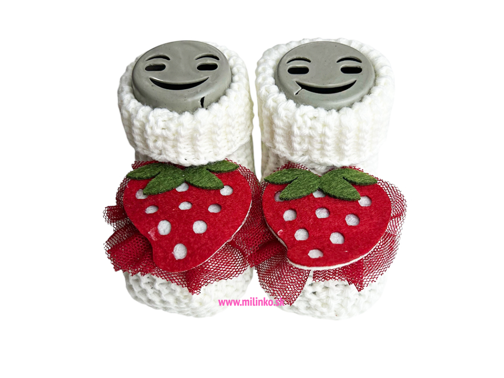 Štrikované kojenecké papučky od 0 do 3 mesiacov. Papučky na každú príležitosť sú vpredu zdobené mašľou. Dĺžka chodidla je 10 cm.