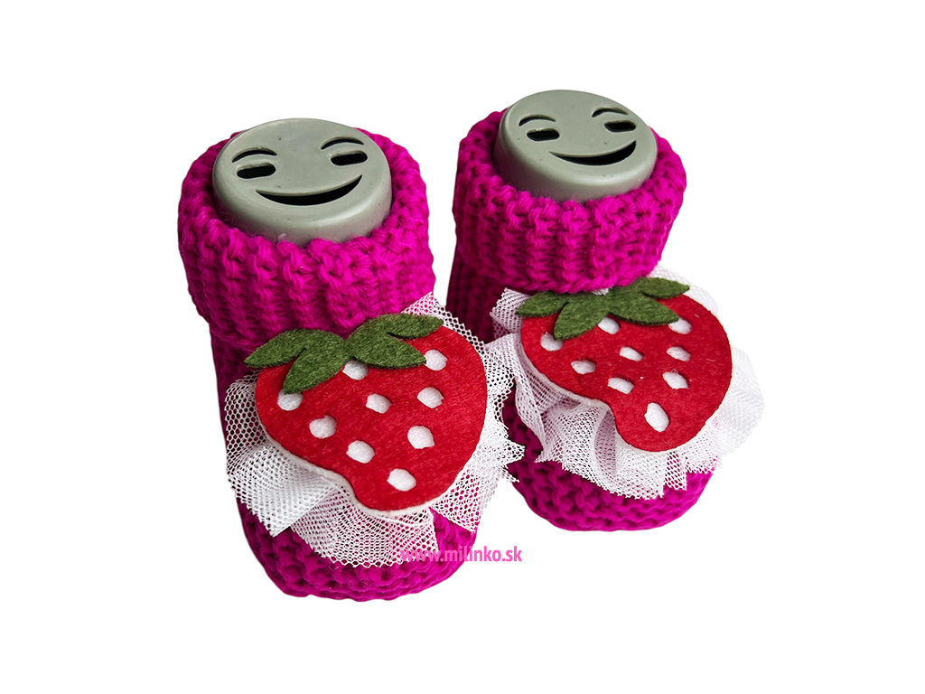 Štrikované papučky pre bábätká - Jahoda, cyklámenové