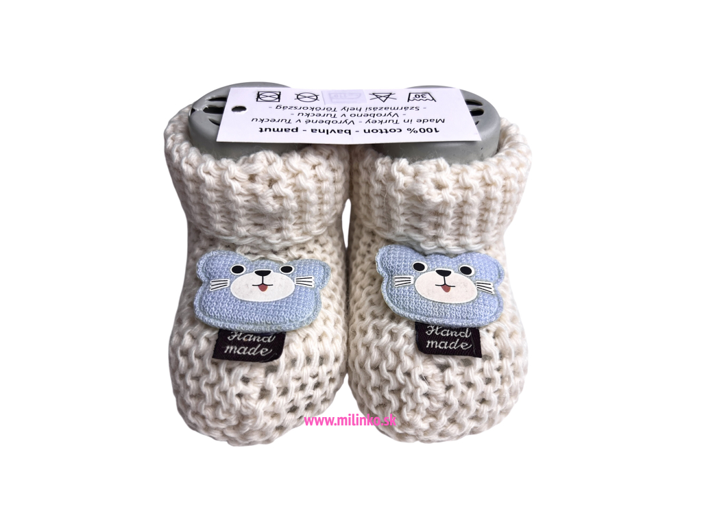 Štrikované kojenecké papučky od 0 do 3 mesiacov. Papučky na každú príležitosť sú vpredu zdobené mašľou. Dĺžka chodidla je 10 cm.