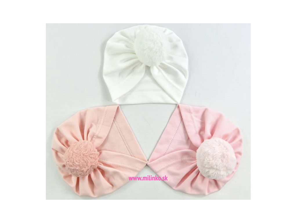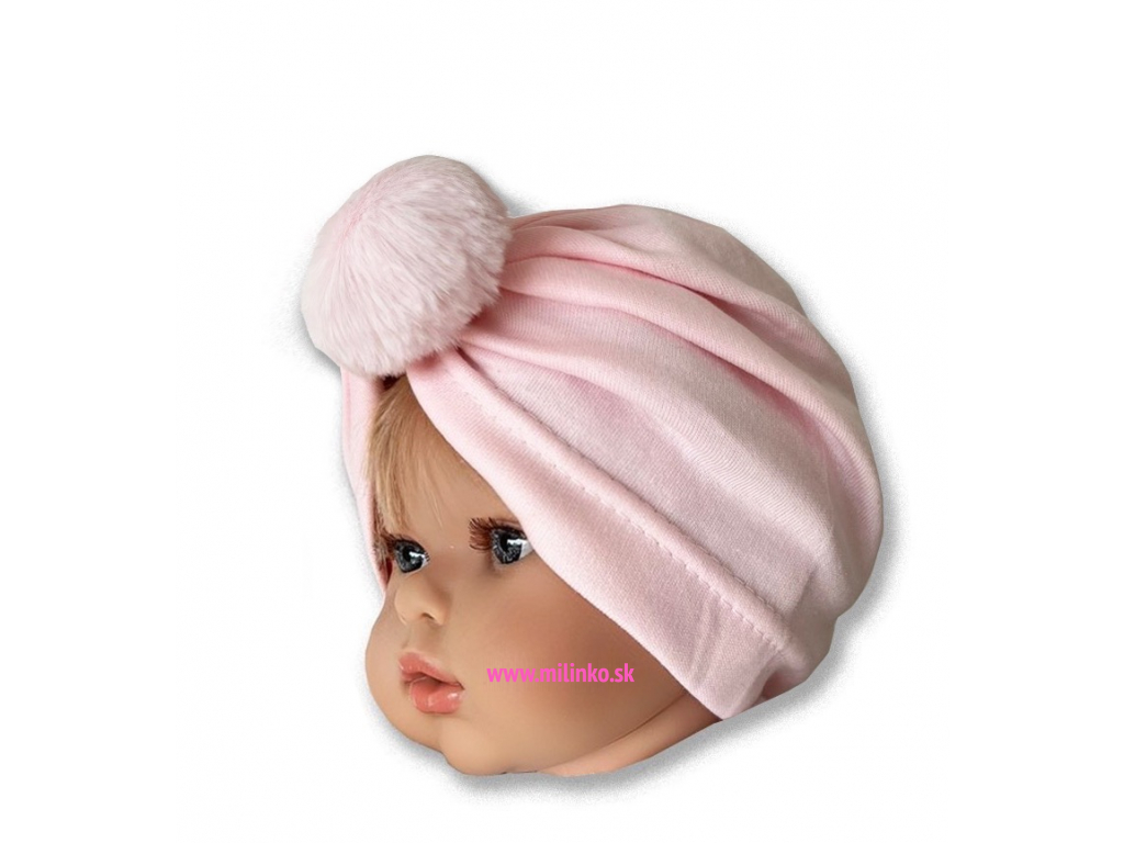 Detská turbánová čiapka- Brmbolček, ružová 0-9m.