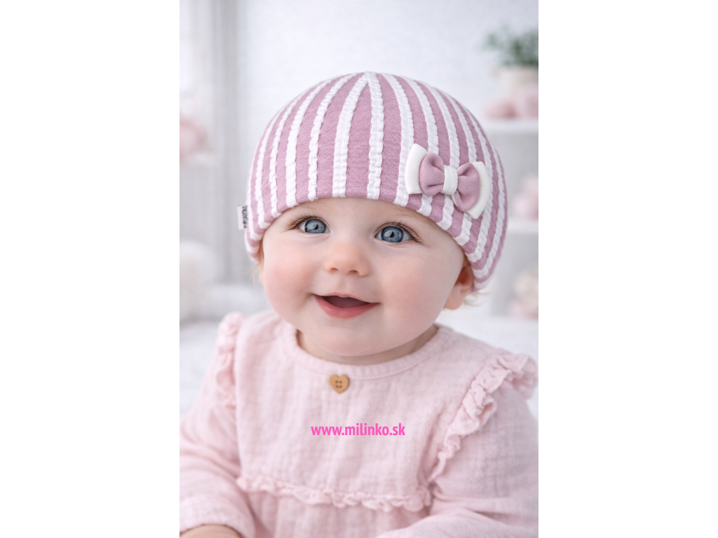 Dievčenská čiapka pre bábätká- Mašlička, fialová 3-12m.